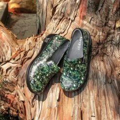 Featured in a Brown vegan leather upper.